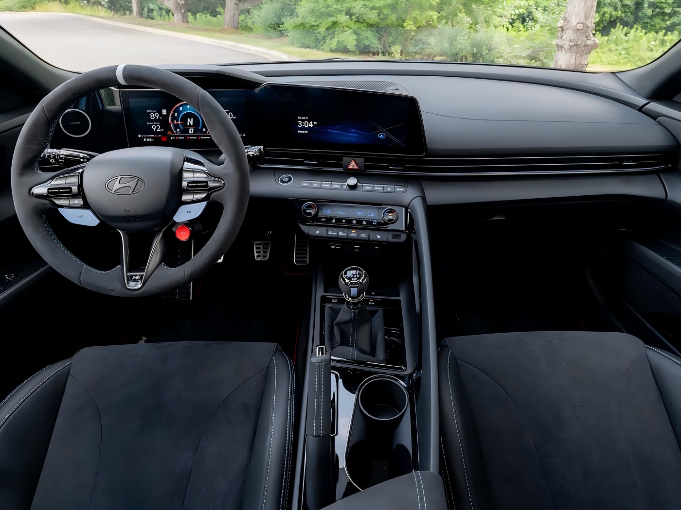 Dari segi interior, secara keseluruhan layout mobil baru ini tidak jauh berbeda dengan Elantra N, namun dilengkapi dengan lingkar kemudi Alcantara "N Performance" dengan penanda posisi jam 12. Sementara itu, baris depan dilengkapi dengan sabuk pengaman berwarna biru, kusen pintu dilengkapi dengan pelindung ambang logam N Performance, dan mobil juga dilengkapi alas lantai N Performance, serta sejumlah besar perlengkapan interior Alcantara. Misalnya saja tuas rem parkir manual, tuas perpindahan gigi, dan armrest box armrest yang dibalut bahan Alcantara. Terakhir, terdapat logo "TCR version" pada lampu handle pintu yang penuh daya tarik emosional.